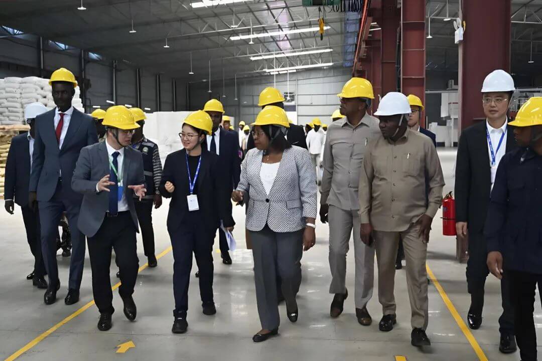 安哥拉本戈省省长玛丽亚·莱伦巴、安哥拉国家工业部总监巴普蒂斯等政府高层亲临现场,与聚石化学团队共同见证了这一重要时刻。他们为项目进行了揭牌和剪彩仪式,这不仅体现了安哥拉政府对聚石化学投资的重视与支持,也预示着项目将在安哥拉迎来广阔的发展前景。